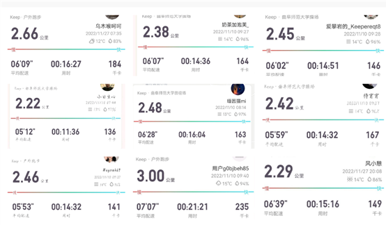在本次健身跑打卡活动中,bat365正版唯一官网参与活动人数达570人,参与活动的成员需每天在Keep App中进行不少于两公里的跑步打卡,并将相应的跑步记录截图上传至跑步打卡专属QQ群中。活动最后,bat365正版唯一官网团委相关负责人员整理全部跑步打卡截图,并进行完赛成员的统计与汇总。