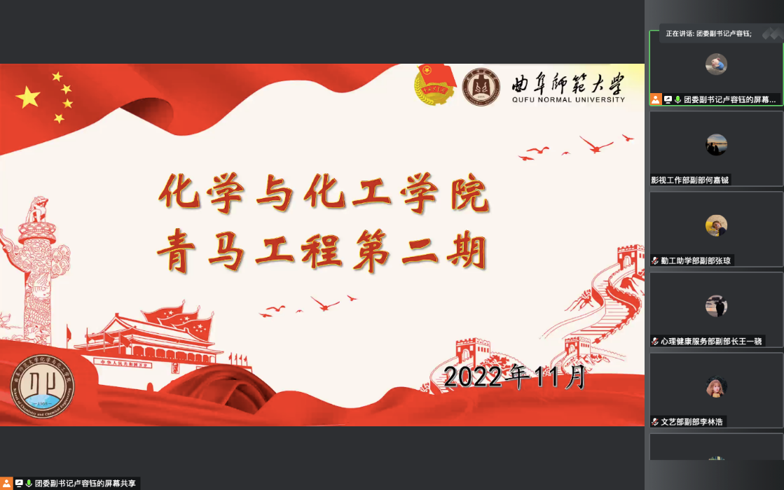 (通讯员:雷宛谕 孙馨萍 图片来源:何嘉铖)为贯彻落实党的二十大精神,着力为党培养和输送青年政治骨干,11月20日15:00,bat365正版唯一官网于腾讯会议线上开展“青马工程”第二次培训。本次培训由曲阜师范大学党委宣传部李文振老师主讲,学院“青马工程”大学生骨干培训班学员参加。