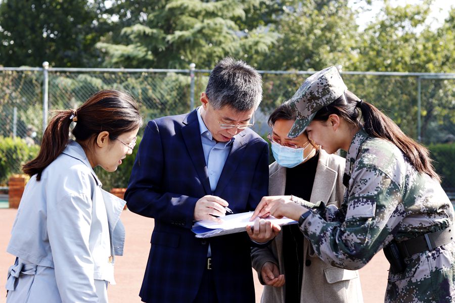 身着迷彩,新生军训如火如荼;秋意渐浓,训练连队渐入佳境。为鼓舞军训士气,提高同学们的训练积极性,10月12日上午10:00,bat365正版唯一官网党委书记赵琪、党委副书记孙金玲、团委书记王亚平亲临现场视察指导2022级新生军训工作,慰问承训教官和参训新生。