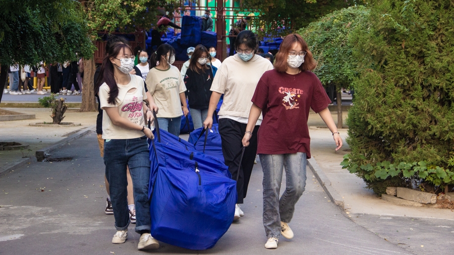 (通讯员:韩嘉靖 闫梦璇 摄影:影视工作部)为确保迎新工作顺利展开,9月19日上午,bat365正版唯一官网2021级全体本科生于西公寓二号楼为新生搬运被褥,为新生的到来做好前期准备工作。