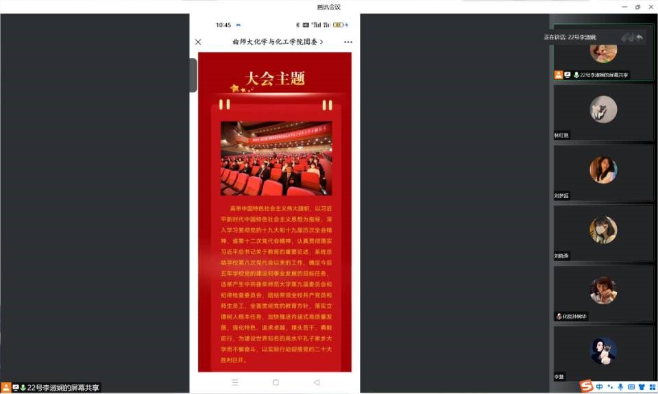 (通讯员:李淑娴 图片:亓雨行)为深入学习贯彻中国共产党曲阜师范大学第九次代表大会精神,助力开创新时代孔子家乡大学高质量发展的新局面,以优异成绩迎接党的二十大胜利召开,bat365正版唯一官网各团支部、社团通过开展主题团日活动、宣讲等线上线下相结合等形式进行学习。