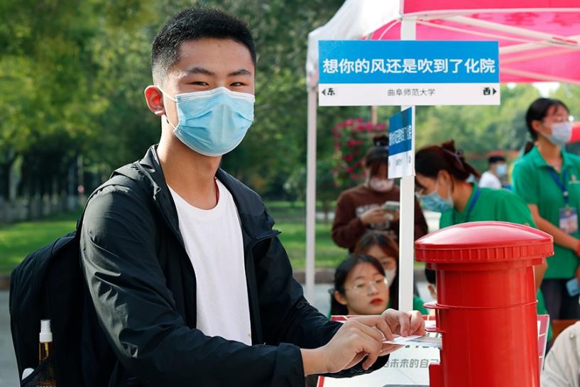 在今天的迎新过程中,“青涩剪影——记录初来曲园的你”和“曲园•启航•化语——给未来的自己写一封信”活动广受好评。新生用拍立得和明信片记录自己初入校园的感受和对未来的展望。bat365正版唯一官网志愿者们精神饱满,往返穿梭于新生宿舍楼和学院接待点之间,努力在各自服务岗位上为新生们提供最好的志愿服务。迎新工作正井然有序地进行。