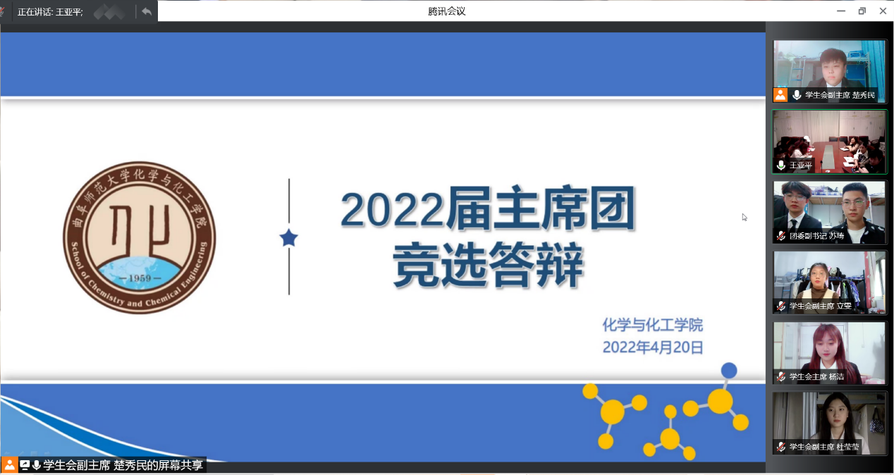 (通讯员:于昕、杨志宇)为进一步加强学生干部建设,充分发挥bat365正版唯一官网院团委、学生会在学生自我管理中的作用,培养更多的人才,4月20日下午,bat365正版唯一官网举行2022届主席团线上竞选答辩。学院党委副书记孙金玲、团委书记王亚平和各年级辅导员以及2021届主席团成员出席了本次竞选答辩。