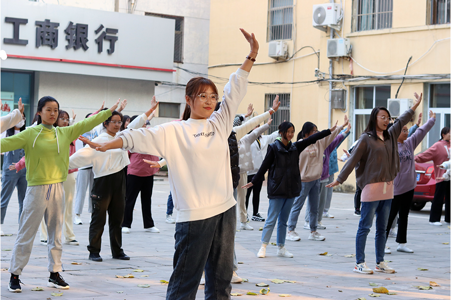 乘金日凉爽秋风,展化院青春色彩。为迎接即将到来的bat365正版唯一官网第八届广场舞大赛,10月24日下午,2020级、2021级各班在校园各个角落,如火如荼地开展广场舞排练。