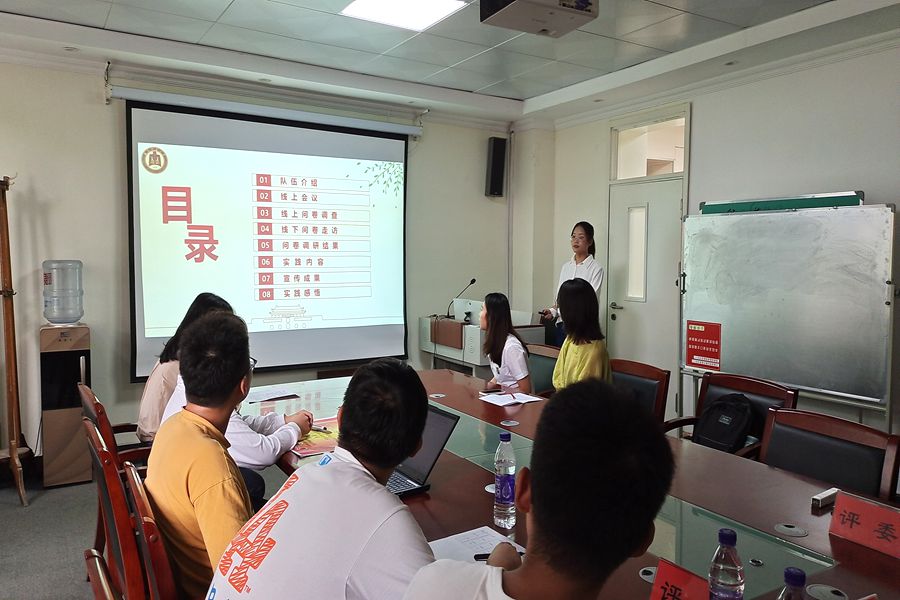 为充分发挥实践育人在人才培养中的作用,引领青年大学生献礼建党一百周年。9月24日,bat365正版唯一官网2021年暑期社会实践答辩会顺利召开。辅导员王亚平、黄秉帅,团委副书记苏琦,团委学生会社团联合会副主席楚秀民、社会实践部部长王经洋担任本次答辩会的评委。