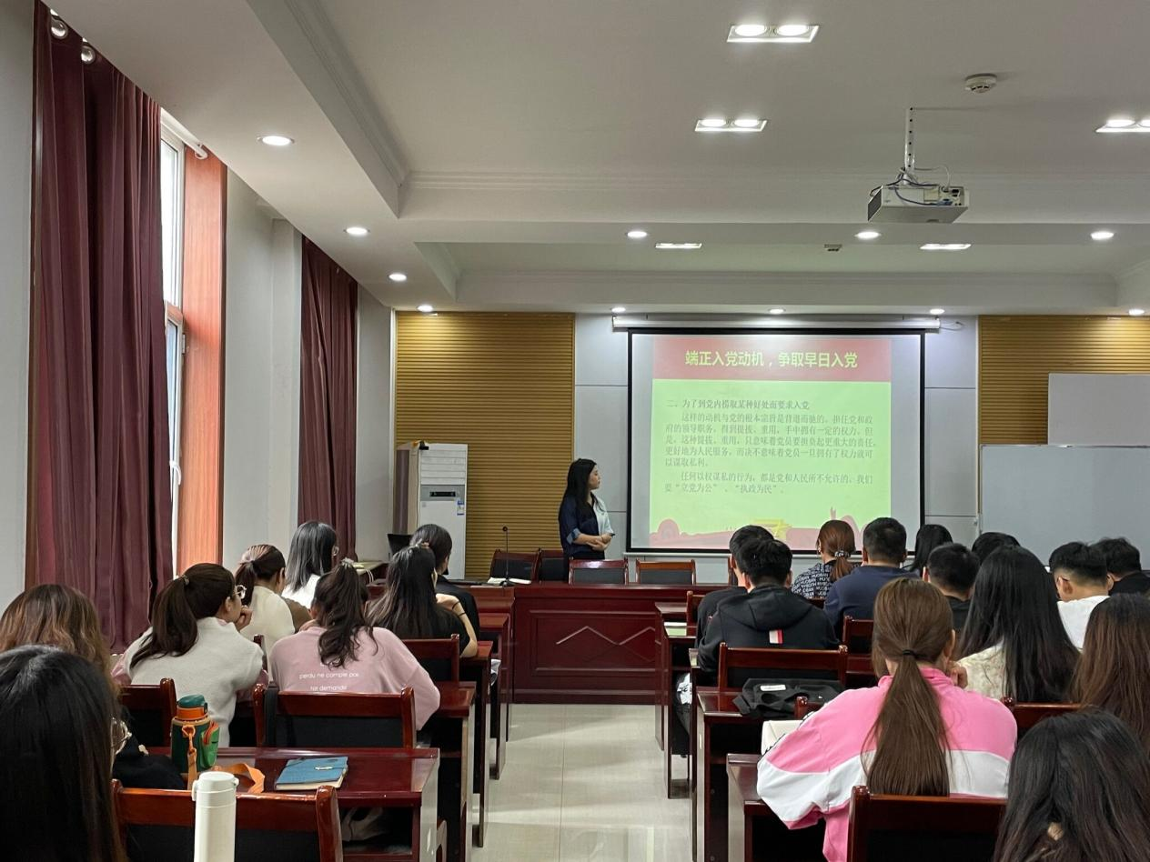 会议上,朱萌同志首先讲解了中国共产党的发展历史与性质,强调中国共产党的领导是中国特色社会主义最本质的特征。其次对本院研究生党支部的基本情况、入党程序与基本要求、如何撰写入党申请书及思想汇报等方面进行了详细介绍。最后鼓励大家只有端正入党动机,坚持严以律己,才能经受住党组织的考验。会议结束之际,朱萌同志希望同学们把加入中国共产党作为砥砺前行的动力源泉,争取早日加入到党组织中来。