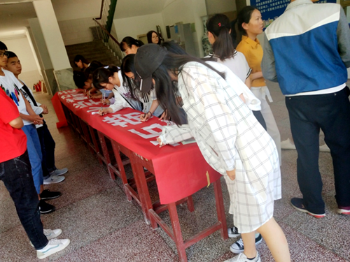 心理健康服务部部长许晓慧首先在各班详细介绍本次活动的目的,即提高同学们对心理健康的认识,拒绝用书本上学到的知识和实验室有害的药品伤害身边的同学。之后,各班心理委员开始播放视频《老梁有话说之复旦大学投毒案》,同学们认真观看,收获颇丰,纷纷表示要增强心理素质和操作水平,牢记实验安全。最后,各班学生以班级为为单位,有序来到系楼大厅进行承诺签名,坚决保证不将化学药品带出实验室。
