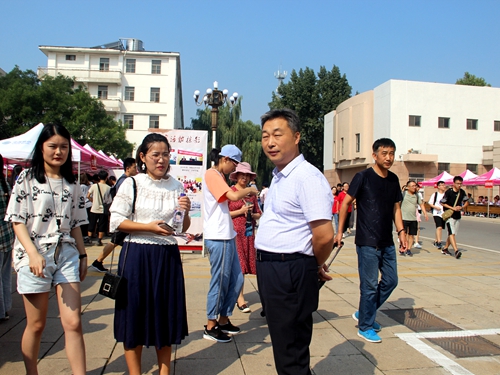 金秋九月,喜迎新生。9月7日上午八点,bat365正版唯一官网2019年迎新工作在科技实验大楼前如火如荼的进行着。党委副书记毛永正、2018级辅导员冯德浩、2019级辅导员王亚平亲临现场,慰问工作人员和志愿者,对迎新工作进行指导。