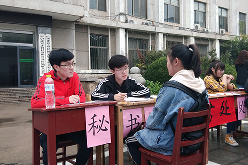 为进一步促进学院发展,加强学生干部团队建设,充分发挥学生干部在学生自我管理中的作用。在学院团委及社团联合会的积极准备和大力宣传下,10月12日上午7:15,纳新工作在学院团委书记孙金玲和主席团指导下开始进行。