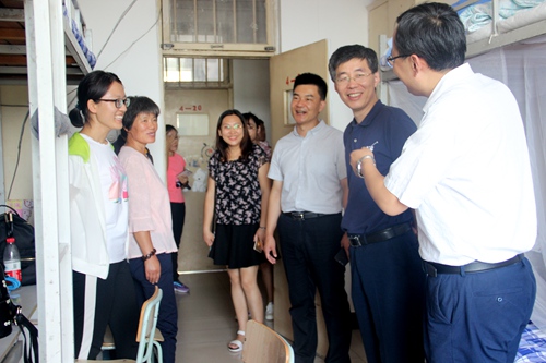 六人宿舍,五湖四海。在宿管部部长朱新浩的带领下,一行人进入宿舍。领导老师们仔细询问同学们的衣食住行是否习惯,从怎样来到学校到壁橱蚊帐,面面俱到。害羞内敛的新疆小姑娘,声音略小的广西女孩子,活泼开朗的大男生……家长的困难同样牵动着领导的心,他们耐心解答大家的问题,给予最大的帮助。一言一行,尽显化院全体师生对新生们的热烈欢迎。