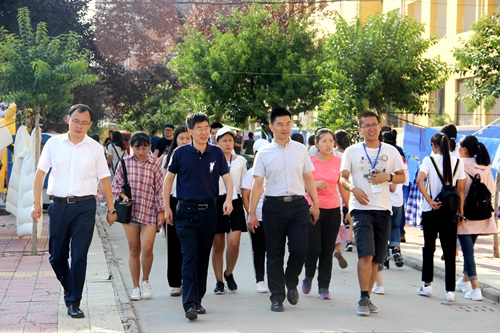 为进一步了解2018级新生的住宿情况,更加明晰新生需求,9月8号下午,bat365正版唯一官网党委书记赵琪,党委副书记孙俊华,团委书记孙金玲,辅导员王亚平、刘鹏,在团委副书记孙荥及主席团成员的陪同下,前往北公寓,进入新生宿舍,与新生及新生家长亲切交流。