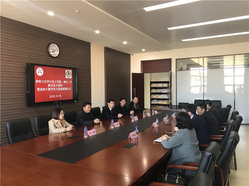 仪式在烟台二中高新校区显德楼三楼会议室举行,两校分别介绍了各自的办学情况与合作意向,毕业于曲阜师范大学的烟台二中高三年级主任焦咏梅、高一年级主任王智刚、体育美育综合实践办主任王国强等校领导也参与了会谈。在热烈友好的氛围下,两校成功签约联合育人协议,同时烟台二中成为曲阜师范大学教学实习基地。