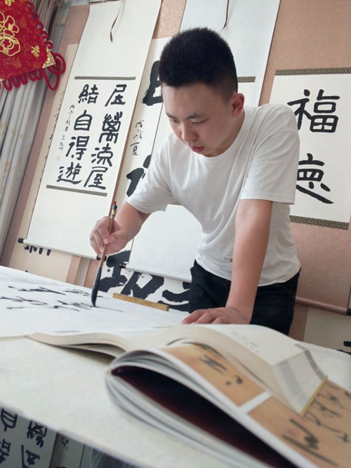 兰凯帅,男,1998年生于青岛平度,自幼喜欢书法,爱好篆刻。嗜古文,尚高格,追慕先贤,尊师重道。高中时为百年母校题字刻石于“馨园”,周一升旗带领全校朗诵优秀传统诗篇,弘扬国学,2018年成为平度市书法家协会会员,利用网络平台传播书法文化。在大一期间,多次带领同学诵读经典,2018年参演了央视春晚曲阜分会场的节目,站在春晚舞台向世界展示曲阜的文化魅力。
