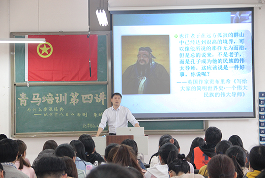 报告伊始,朱斌以“为什么要读经典——以《路易•波拿巴的雾月十八日》为例”为切入点,并结合为什么要读书,为什么要读马克思经典,为什么是《路易•波拿巴的雾月十八日》三个问题深入浅出,生动形象地为学生干部们带来思想上的教育与指导。从如何训练思想,当代最重要的思想、文学的魅力等方面具体讲述当代大学生应如何充实思想,坚定理想信念,成长为一名优秀的青年马克思主义者。他通过讲述身边实例以及列举名人名言的方式, 语言通俗易懂,却富有深刻含义。同学们仔细听取讲课,并及时做好记录,受益匪浅。最后,冯德浩鼓励大家应当多读书丰富自己的内在,增加自己文化素养。在同学们热烈的掌声中,报告会圆满结束。