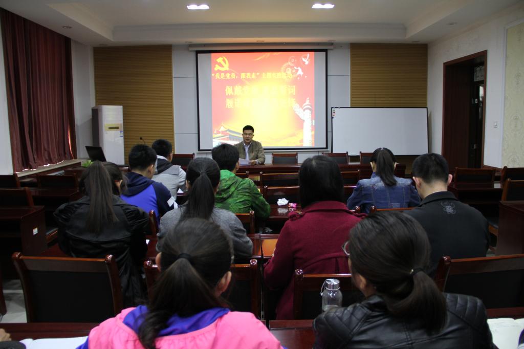 为深入学习贯彻学校党委《关于开展“我是党员,跟我走”主题实践活的实施意见》(曲师大委字〔2017〕14号),进一步推进“两学一做”学习教育常态化制度化,充分发挥基层党组织的战斗堡垒作用和党员的模范带头作用,bat365正版唯一官网教工党支部、研究生党支部、本科生党支部于2017年4月19日分别召开了全体党员大会,开展“我是党员,跟我走”主题实践活动,部署党员公开承诺工作。