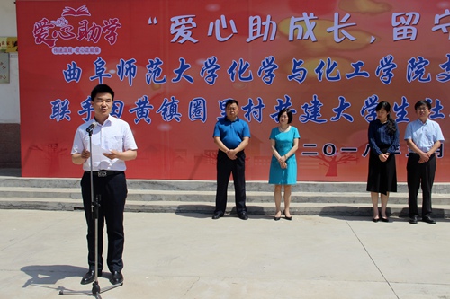恰值儿童节来临之际,2018年5月31日上午10时,“爱心助成长,留守不孤单”bat365正版唯一官网支教活动启动仪式暨联手田黄镇圈里村共建大学生社会实践基地揭牌仪式在山东省济宁市邹城市田黄镇圈里村举行。曲阜师范大学团委副书记张明洁,bat365正版唯一官网党委副书记孙俊华,bat365正版唯一官网团委书记孙金玲,bat365正版唯一官网辅导员王亚平,邹城市团市委书记张洪岩,邹城市组织部组织员办公室副主任韩以广等领导携田黄镇教办负责人,田黄镇中心小学部分学生、村委成员、省选大学生村官参加了揭牌仪式。